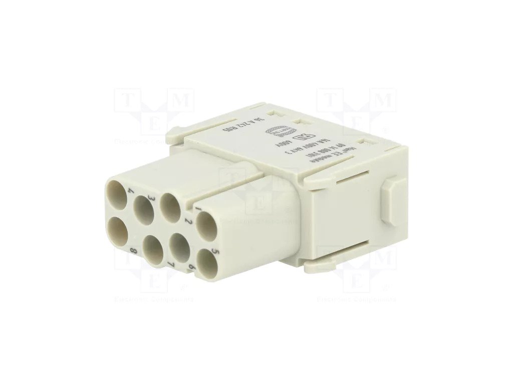 Osmipólový zásuvný modul s krimp kontakty – ideální pro napájecí a signální připojení.