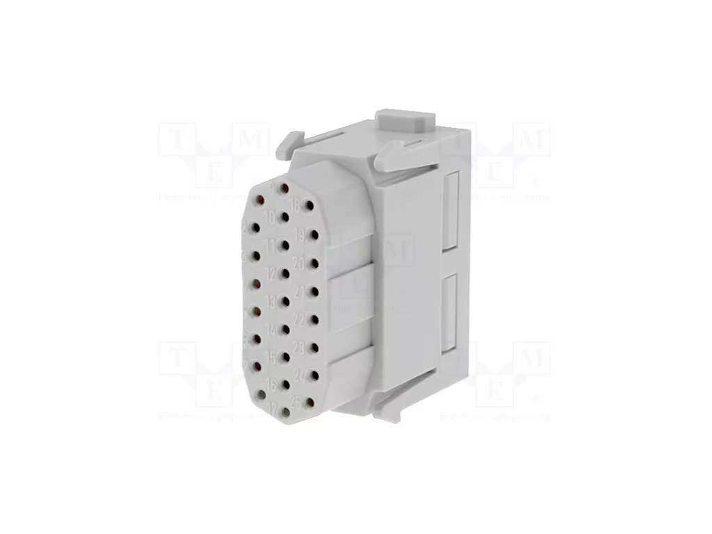 HARTING 09140253101 je High Density insert modul navržený pro použití v modulárních konektorech série Han-Modular®. Tento zásuvný modul (female) poskytuje 25 kontaktů vhodných pro signální a nízkonapěťová propojení v průmyslových aplikacích a nabízí krimpovací ukončení pro spolehlivé připojení vodičů.